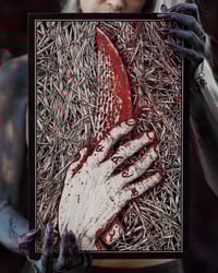 This limited edition engraving has been laser etched on US grown Hard Maple hardwood. Each one is carefully cut, sanded, painted and oiled by hand then put under a powerful laser in order to burn in this SpaceWolf original illustration.